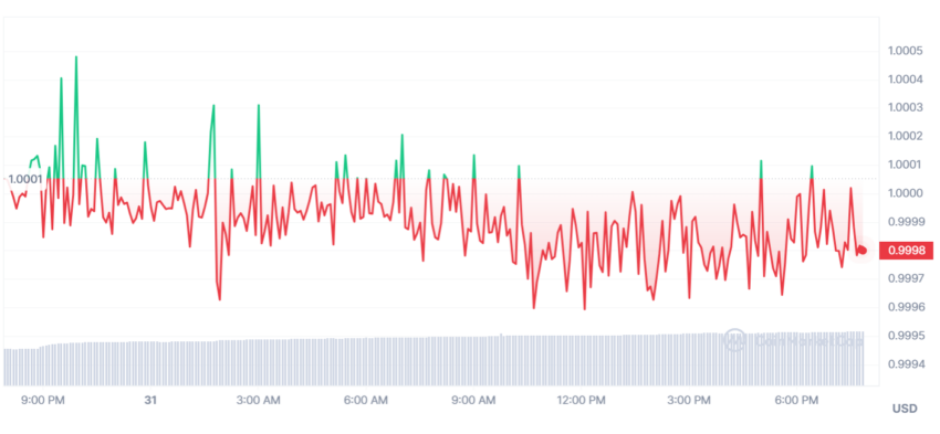 USDT 가격은 검증 보고서 발표 당일 큰 변화가 없었다. 출처: CoinMarketCap.