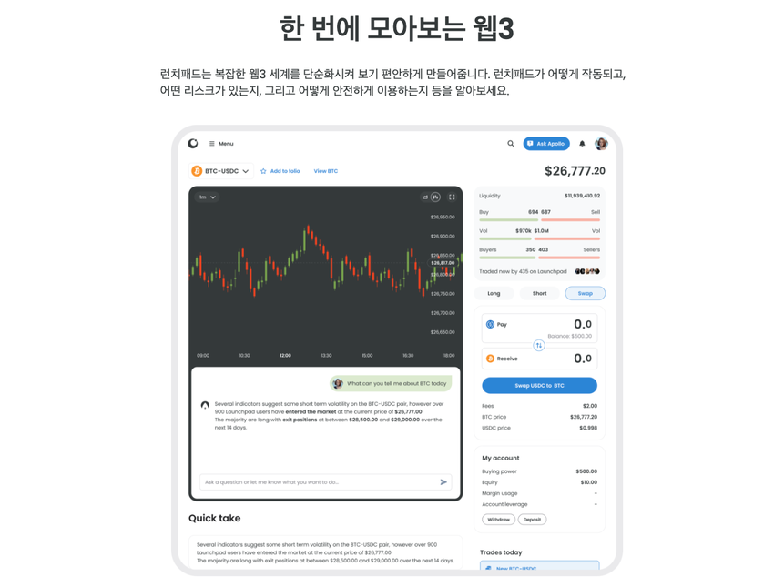 Sponsored Sponsored또한 토큰을 스테이킹하면 런치패드 XYZ 트레이딩 터미널에서 다양한 인사이트 자료도 사용할 수 있다. 아직 $LPX가 CEX나 DEX에서 거래된 적이 없어 과거 자료를 기반으로 미래 가격 움직임을 예측할 수는 없지만 다양한 사용 사례를 제공하는 만큼 투자 매력이 존재한다고 분석할 수 있다. $LPX는 유틸리티 토큰으로 자동차, 부동산 등의 조각화된 자산을 구매하는 데 사용할 수 있다.