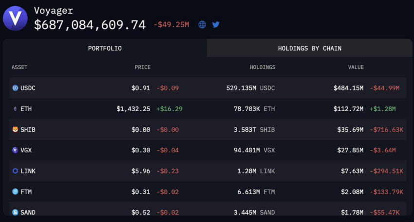 하룻밤 사이 가격이 상승했음에도 불구하고 보이저의 잔고는 여전히 달러화 대비 2700만달러 떨어진 상태로 나타난다.