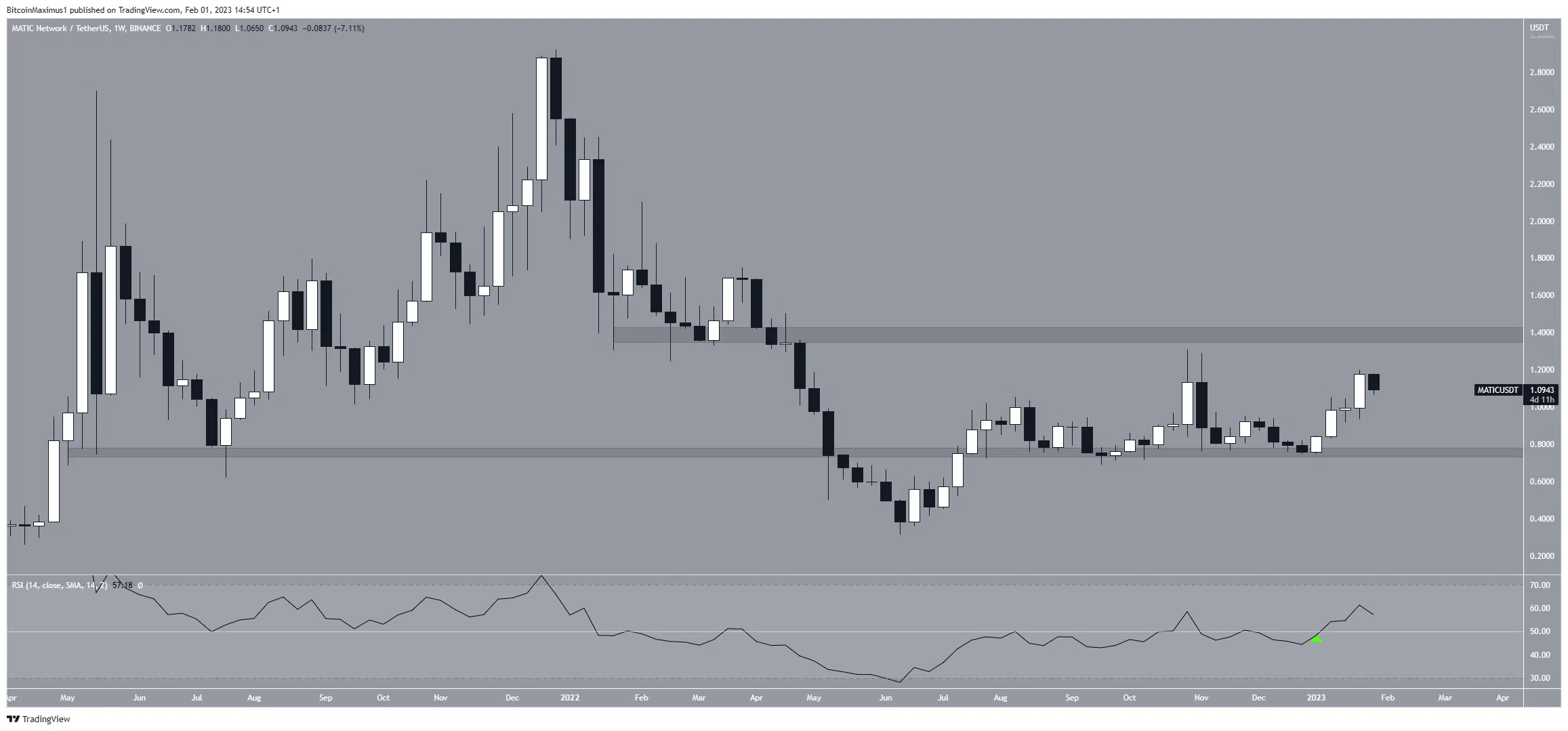 1월 29일 고점인 1.20달러를 돌파하면 MATIC은 장기 저항선 1.38달러를 향해 상승할 것으로 전망된다.