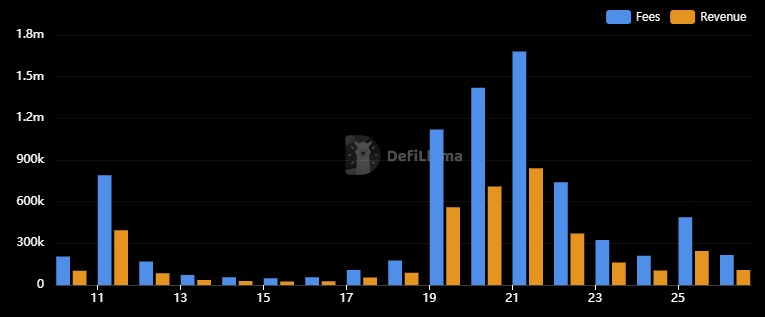 디파이라마 자료를 보면, 프렌드테크는 24시간 수수료 수입이 한때 170만 달러(약 22억 5590만원)까지 치솟은 이르는 것으로 나타났다. 특히 지난 8월 22일에는 한때 수수료 수입 규모가 이더리움에 이어 두 번째로 큰 플랫폼으로 기록되기도 했다.