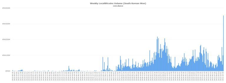 로컬비트코인 데이터에 따르면, P2P 암호화폐 거래가 한국에서 최고기록을 갱신했다. P2P 거래는 한국에서 규제를 둘러싼 불확실성 가운데 급상승했다.