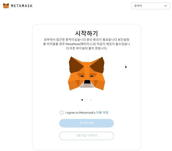 이더리움 기반 개인지갑 메타마스크를 사칭한 것으로 의심되는 피싱 문자가 등장해 주의가 요구된다.