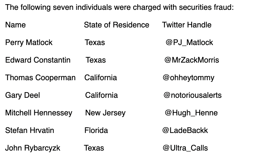 SEC에 따르면 이들 소셜 미디어 인플루언서들은 2020년 1월부터 성공적인 트레이더라고 주장하며 트위터와 디스코드에서 팔로워들을 이용하여 주가를 조작했다.