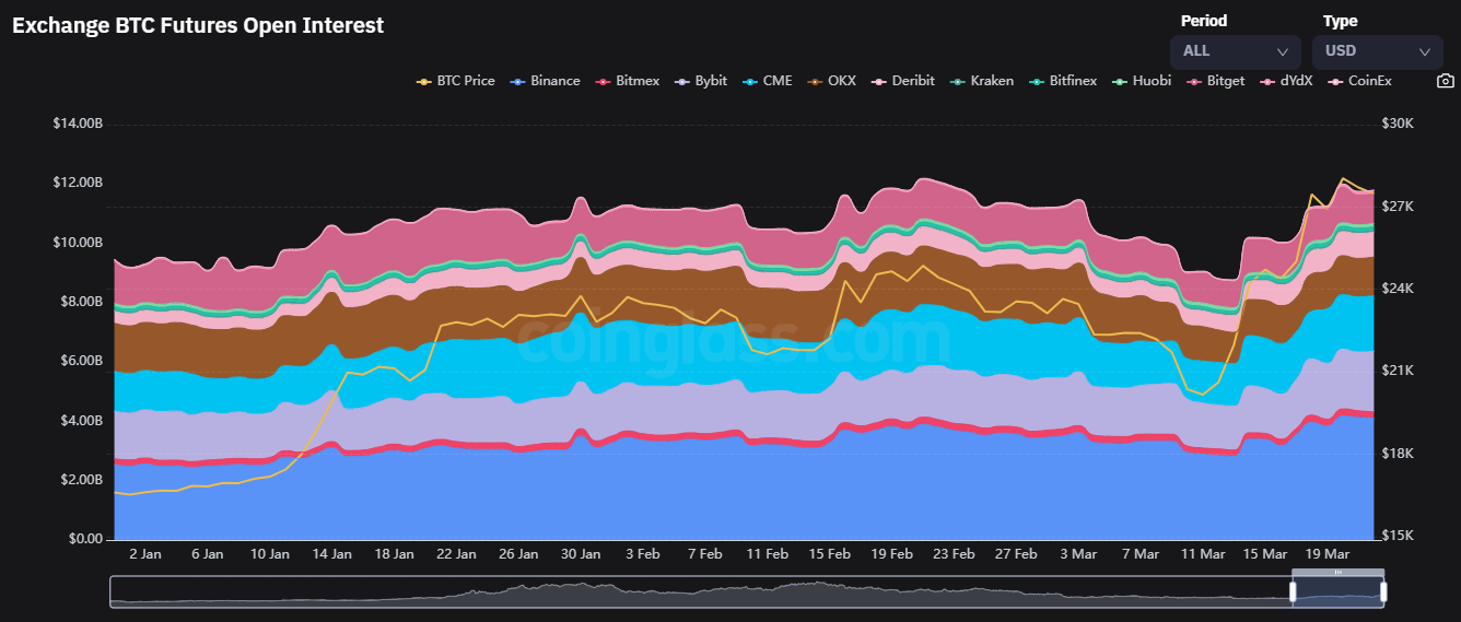 2023년 비트코인 미결제약정 추이. 출처=코인글래스