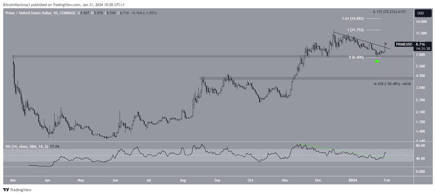 프라임 가격은 2023년 12월 15일 사상 최고가인 11.84달러에 도달한 이후 하락했습니다. 하락은 하강 저항 추세선 안에 포함되었습니다.