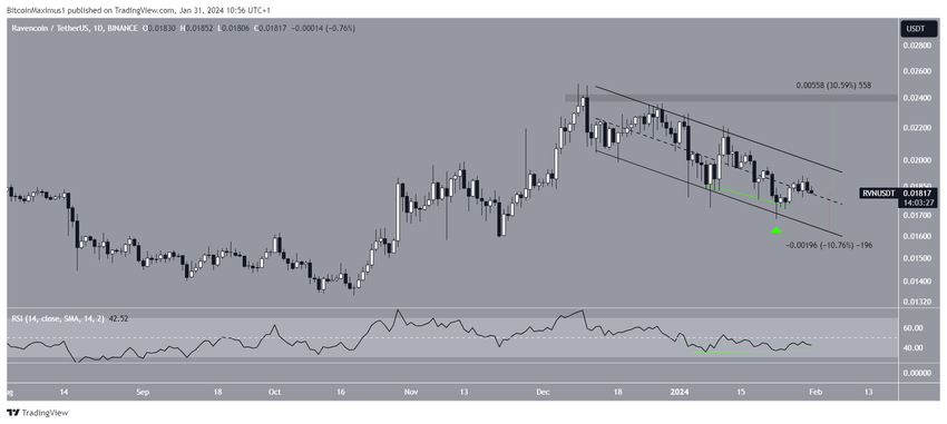 마지막으로 잘 알려지지 않은 알트코인은 2023년 12월부터 하강 병렬 채널 내에서 거래된RVN입니다. 이러한 채널에는 일반적으로 조정 움직임이 포함되며, 이는 결국 이 채널에서 벗어날 가능성이 가장 높다는 것을 의미합니다.