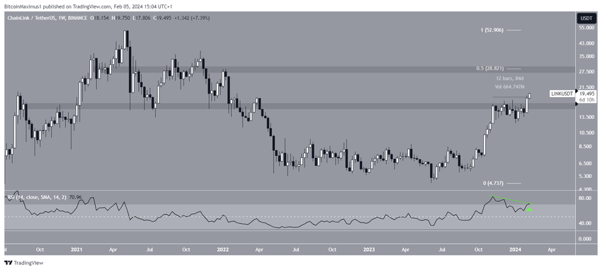 체인링크(LINK) 가격은 지난 2주 동안 빠르게 상승하여 오늘 19.75달러로 최고치를 기록했습니다. 이는 2022년 1월 이후 가장 높은 가격입니다.