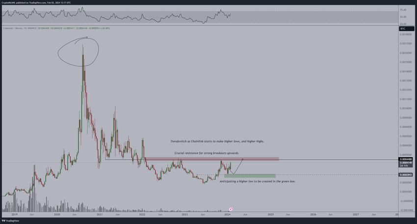 주간 시간대 기술적 분석에 따르면 LINK는 2023년 6월 이후 급격하게 상승했습니다.