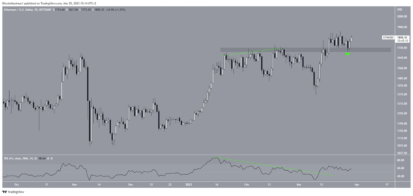 상승세가 지속된다면 이더리움 가격은 2000달러를 향해 나아갈 수 있다. 그러나 1700달러 이하로 종가가 형성되면 강세 구조가 무효화되고 1450달러 지지선까지 떨어질 수 있다.