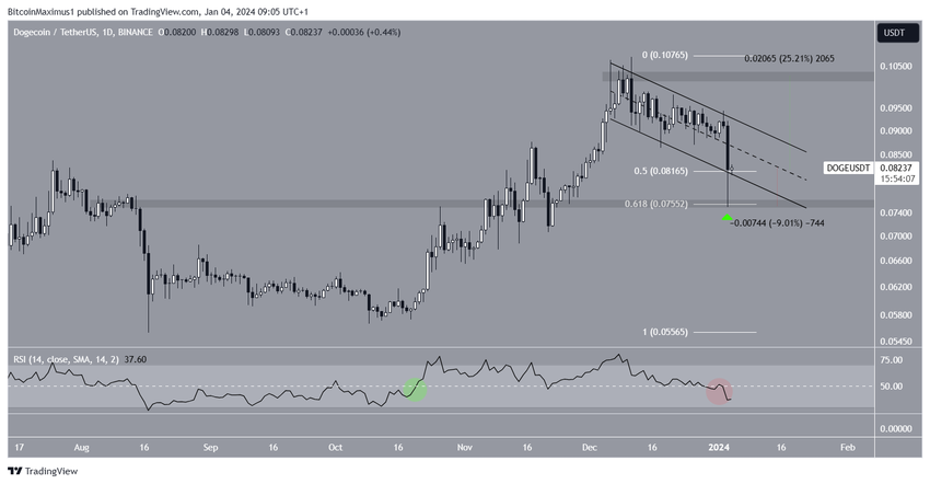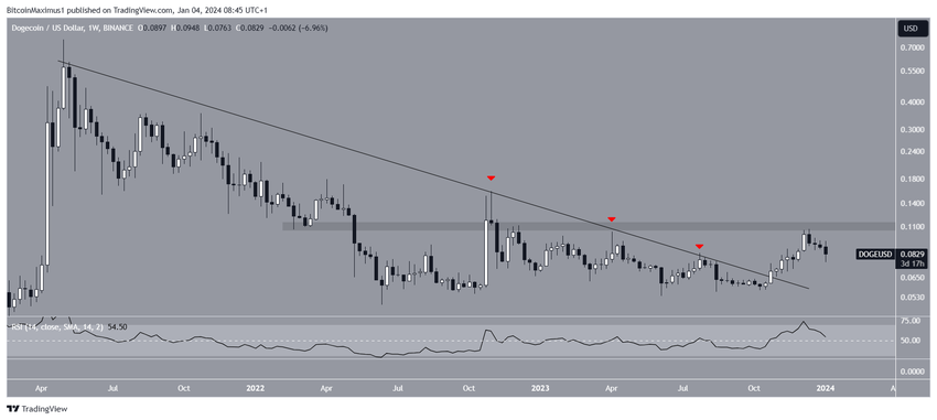이 돌파로 12월에는 중요한 수평 저항선 바로 아래에서 2023년 최고가인 0.108달러를 기록했습니다. 이후 도지코인 가격은 하락세를 보이고 있습니다.