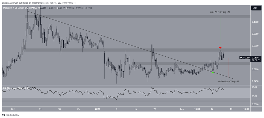 DOGE 가격이 $0.088을 돌파하면 다음 저항선인 $0.102까지 상승할 수 있으며, 장기 채널에서도 돌파할 수 있습니다.