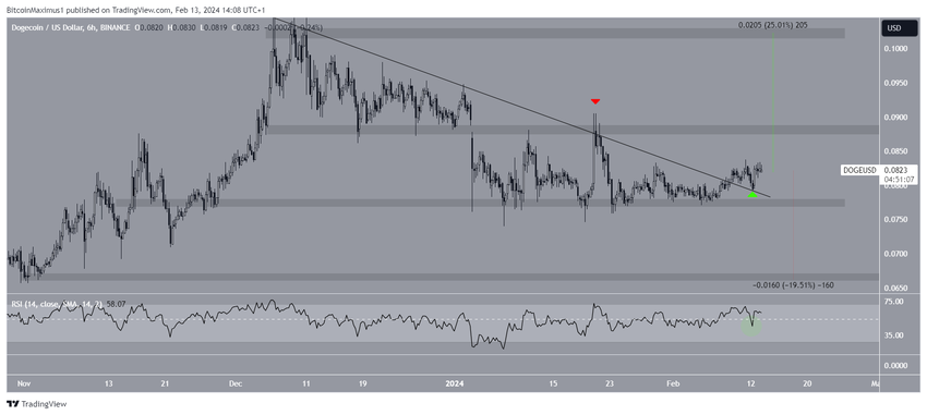 DOGE가 돌파하면 추세 반전을 확인하고 다음 저항선인 $0.102까지 25% 상승을 시작할 수 있습니다.