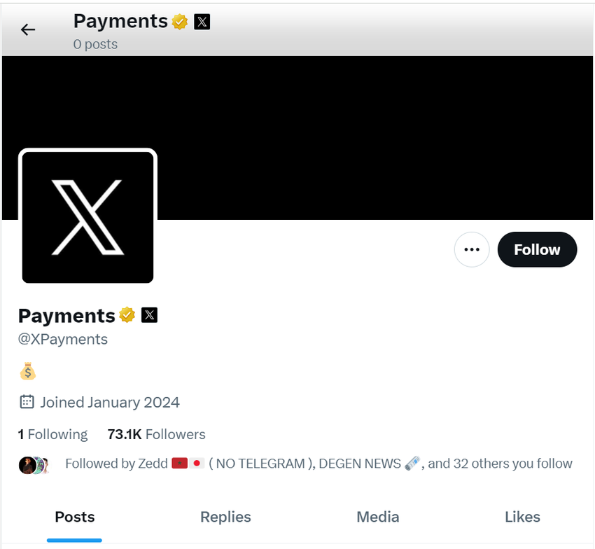 새로 생성된 계정인 X Payments는 금색 인증 배지와 독특한 X 로고가 눈에 띄며, 플랫폼과의 연관성을 나타냅니다. 게시물이 많지 않음에도 불구하고 이 계정은 최근 업데이트 기준으로 73,000명이 넘는 팔로워를 확보했습니다.