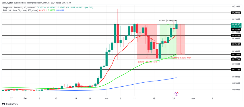 도지코인 가격이 차트에서 상승하면서 3월 중순의 손실을 회복할 수 있을 만큼 큰 랠리를 남겼습니다. 42% 상승으로 26% 폭락을 만회하며 DOGE는 0.20달러에 근접했습니다.