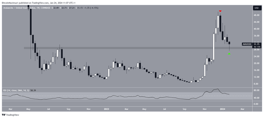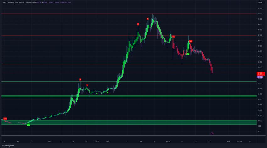 아발란체(AVAX) 가격은 12월 24일 2023년 최고가인 50달러 이후 40% 가까이 하락했습니다.