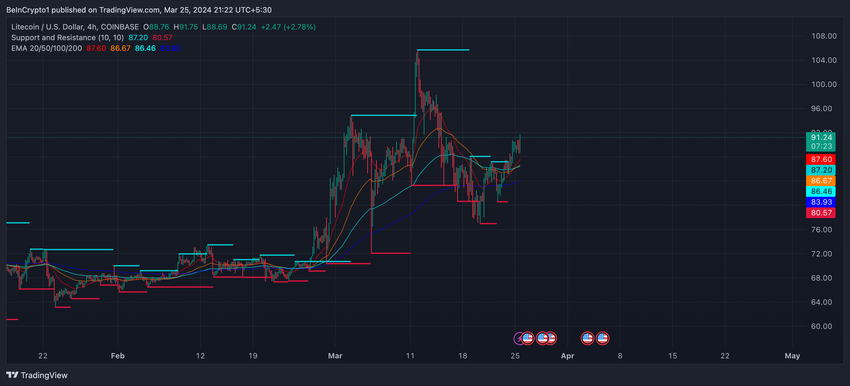 LTC 가격 예측: EMA 라인이 골든 크로스를 형성하다