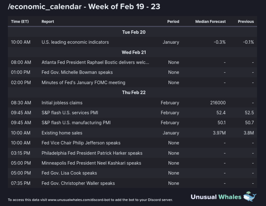 거시경제 전문 매체 더 코바이시 레터는 2월 19일부터 시작되는 한 주간의 미국 주요 경제 이벤트를 공유했습니다.