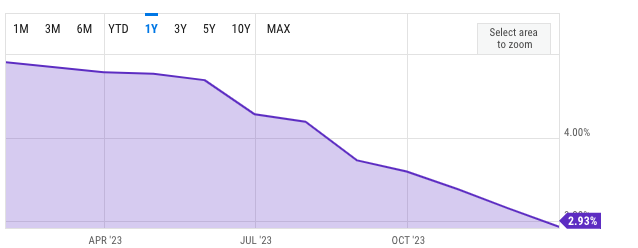 PCE는 미국 연방준비제도가 긴축 효과를 벤치마킹하는 데 사용하는 목표치인 2%를 여전히 상회하고 있습니다. 중앙은행은 2022년 3월부터 연방기금 금리를 5.25~5.5%로 인상했으며, 이로 인해 주거를 제외한 대부분의 부문에서 물가가 크게 하락했습니다.