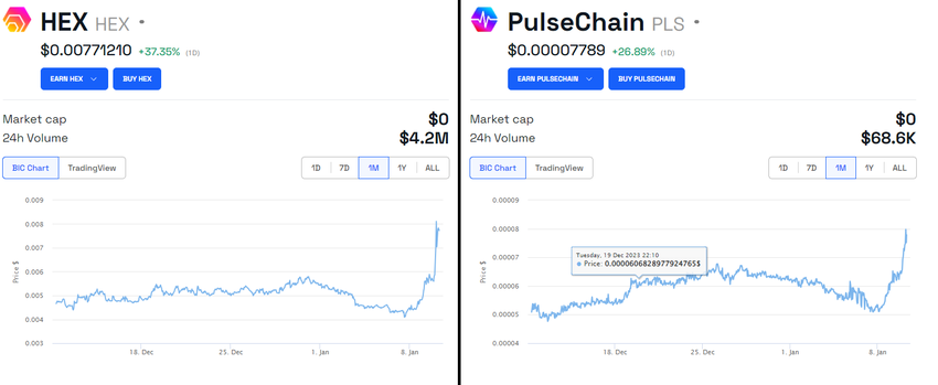 하트의 적극적인 법적 대응 소식이 전해진 후, HEX와 펄스체인(PLS), 펄스엑스(PLSX) 등 관련 암호화폐의 가격은 두 자릿수 급등세를 보였습니다.
