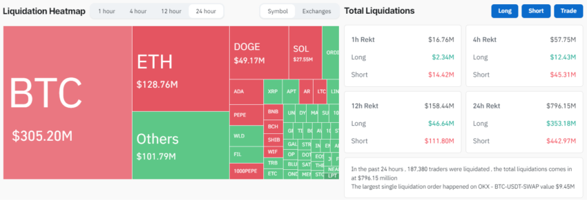 코인글래스 데이터에 따르면 이 엄청난 수치는 2024년 현재까지 기록된 일일 암호화폐 포지션 청산 금액 중 가장 큰 규모입니다.