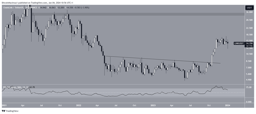 LINK 가격은 암호화폐 시장 사이클에서 가장 먼저 상승한 가격 중 하나로, 10월에 하강 저항 추세선을 돌파한 후 상당한 상승세를 보였습니다. 이러한 상승으로 12월 마지막 주에 2023년 최고가인 17.67달러를 기록했습니다.