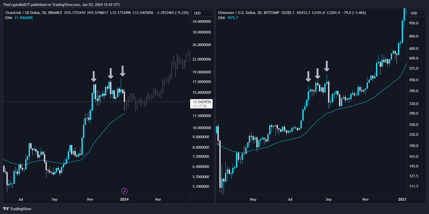 크립토불은 LINK 가격 움직임이 2020년 이더리움(ETH)의 프랙탈이라고 생각합니다. 따라서 가격이 250달러 이상으로 상승할 것이라고 전망했습니다.