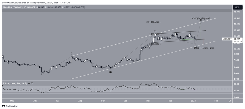 채널에서 돌파할 경우, LINK의 상승 목표가는 현재 가격에서 65% 상승한 23.60달러입니다.