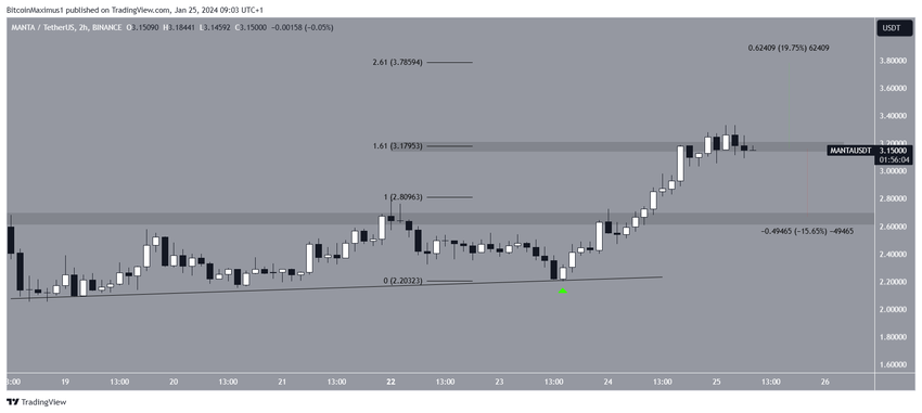 MANTA 가격은 1월 18일 바이낸스에 상장된 이후 상승 지지 추세선과 함께 상승했습니다. 또한 이 기간 동안 2.65달러의 수평 저항선을 따라 상승했습니다.