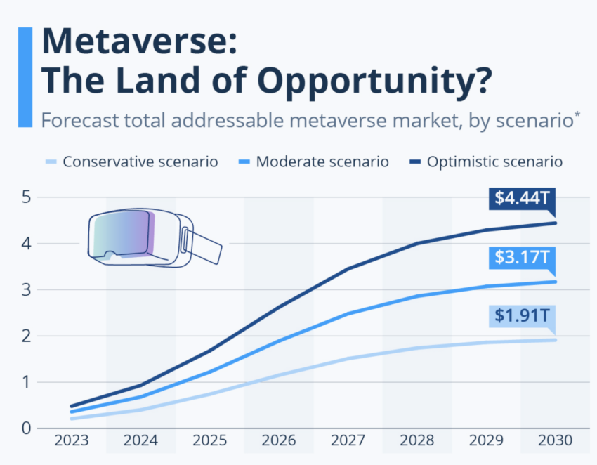 이는 최근 Acumen Research and Consulting이 2032년까지 메타버스 시장이 4조 달러 규모로 확대될 것으로 전망한 가운데 나온 결과입니다. 이러한 예측은 가상현실 및 증강현실 기술의 광범위한 채택에 힘입어 더욱 탄력을 받고 있습니다.
