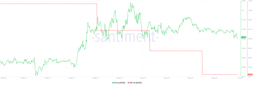 지난 한 달 동안 AVAX의 7일 RSI는 지속적으로 하락하며 시장 심리의 변화를 예고했습니다.