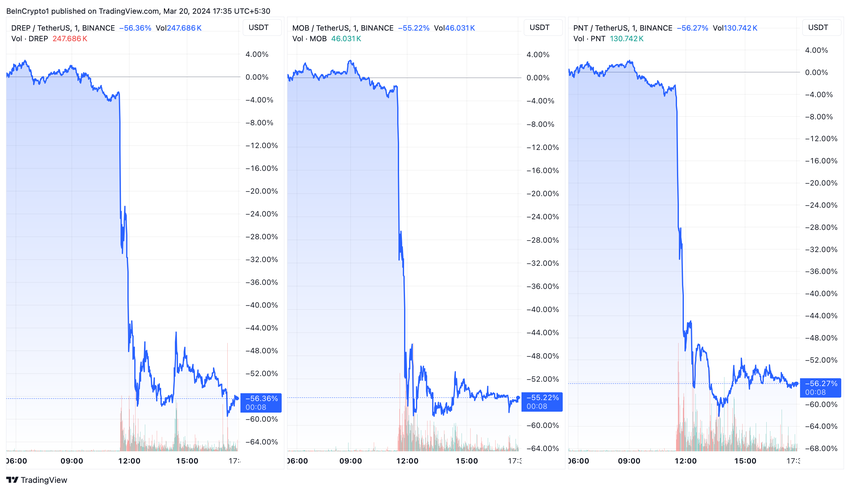 발표 후 시장은 급격하게 반응했습니다. 언급된 알트코인의 가치는 50% 이상 하락했습니다. 이러한 급락은 거래소 상장이 암호화폐 가치와 투자자 전망에 미치는 영향을 강조합니다.