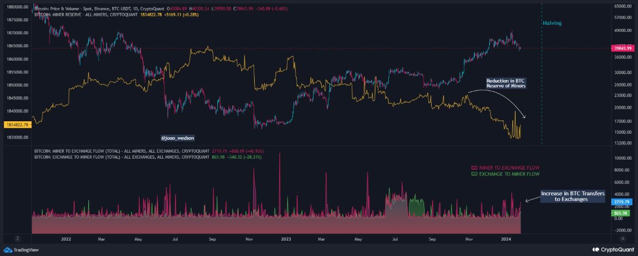 1월 26일, 온체인 분석 제공업체 크립토퀀트는 반감기를 앞두고 채굴자들이 비트코인 보유량을 매도하는 것은 더 많은 매도 압력을 초래할 수 있는 전략적 움직임이라고 보도했습니다.