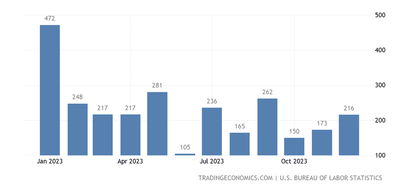 미국 노동통계국은 금요일에 고용주가 12월에 216,000개의 일자리를 추가했다고 발표했으며, 이는 비트코인 상장지수펀드(ETF) 승인을 앞두고 암호화폐 시장에서 조용한 반응을 불러일으켰습니다. 실업률은 3.7%에 머물렀고, 평균 시간당 수입은 월 0.4% 상승했습니다.