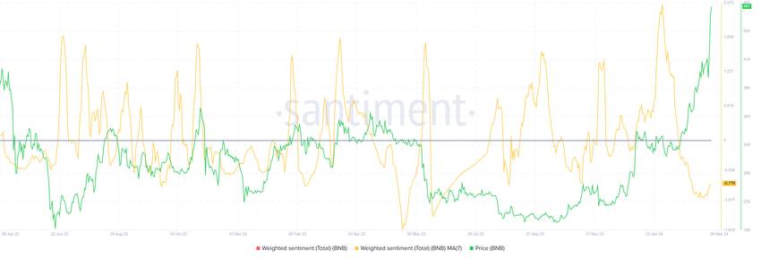 주간 평균 감정이 9개월 만에 최저치를 기록하는 등 BNB의 경우 후자의 조건에 해당합니다.