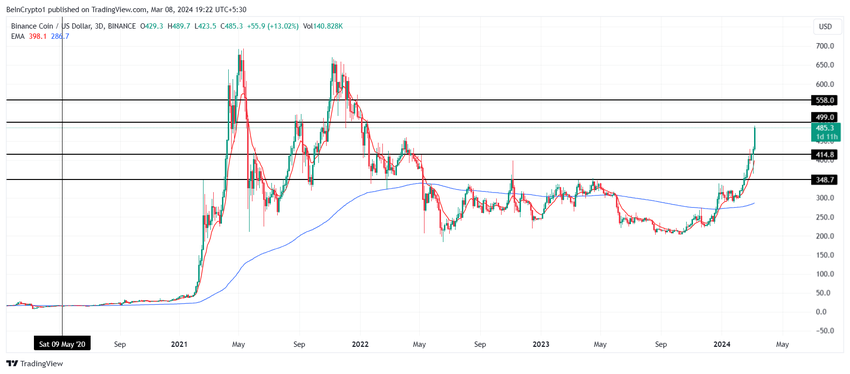 BNB 가격은 2월 말 이후 큰 폭의 상승세를 기록한 암호화폐 집단에 합류하지 못했습니다. 그러나 500달러에 한때 도달하는 데 성공했습니다.