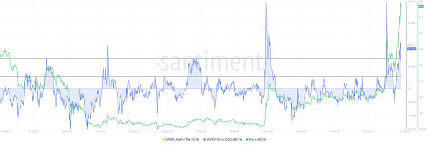 비트코인캐시의 경우도 마찬가지이며, 이는 시장가치 대비 실현가치(MVRV) 비율로 더욱 입증됩니다.