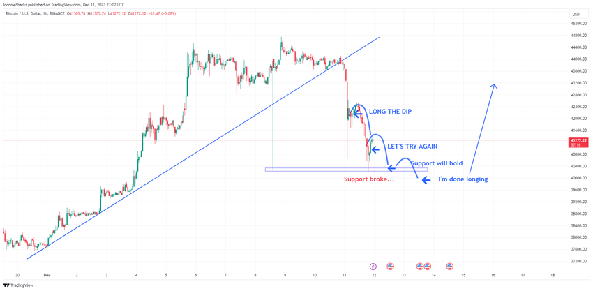 비트코인(BTC) 가격은 12월 9일 연중 최고치인 44,700달러에 도달했지만 이후 하락했습니다.