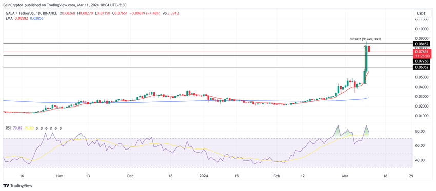 그러나 투자자들이 회복력을 발휘하고 추가 상승을 기대하며 매도를 보류한다면 갈라 가격은 0.072달러에서 반등할 수 있습니다. 이는 갈라가 저항선인 0.0845달러를 돌파할 수 있는 힘을 제공할 것이며, 0.10달러까지 상승하여 약세 논리를 무효화할 수 있습니다.