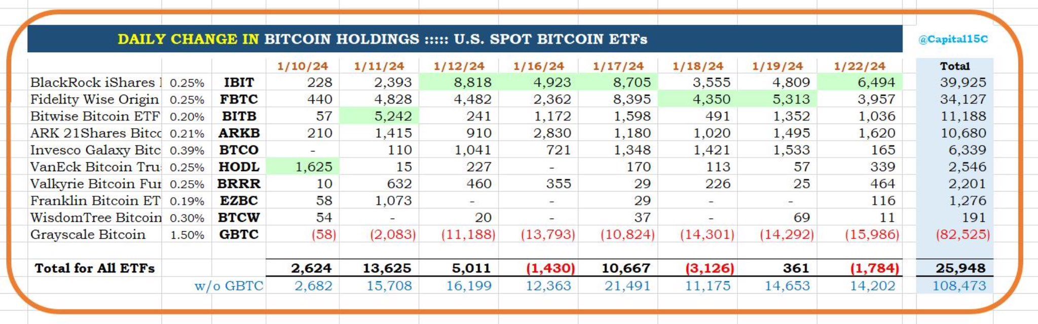 1월 24일, 비트코인 ETF 보유 현황을 업데이트해 온 CC15캐피털은 다음과 같이 말했습니다: