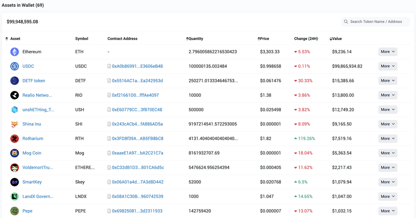 이 펀드의 출시는 이더리움 네트워크에서 USDC 스테이블코인과 관련된 1억 달러 규모의 거래가 실행되면서 주목을 받았습니다. 그 결과, 블랙록이 공개한 이더리움 주소에는 다양한 밈 코인과 NFT이 몰려들었습니다.