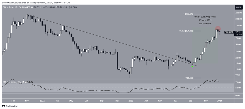 이러한 강세 SOL 가격 예측에도 불구하고 삼각형이 깨지면 0.5 피보나치 되돌림 지지선인 73달러까지 26% 하락할 수 있으며, 이는 4파를 완성할 것입니다.