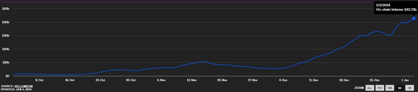 SOL의 가격 변동성에도 불구하고 솔라나 네트워크는 활발한 활동을 보이고 있습니다. 솔라나의 일일 거래량은 400억 달러 이상으로 급증했으며, 이는 2022년 10월 이후 네트워크에서 가장 높은 거래량입니다.