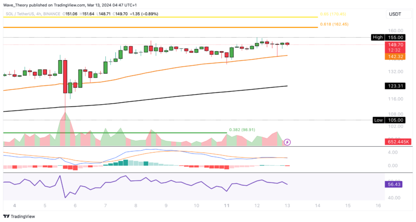 솔라나의 4시간 차트에서 지표는 엇갈린 모습을 보이고 있습니다. MACD 히스토그램이 하락 추세를 보이고 MACD 선이 약세를 교차하는 동안 RSI는 중립을 유지합니다.