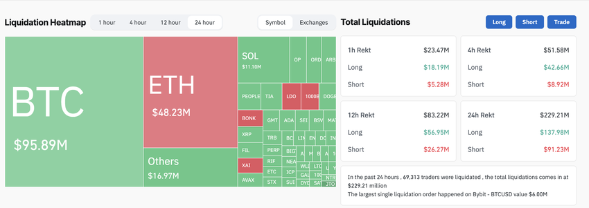 이 가격 변동의 영향은 상당했습니다. 9천만 달러 이상의 비트코인 레버리지 포지션이 청산의 대상이 되었으며, 다양한 암호화폐에서 총 2억 3천만 달러의 청산이 이루어졌습니다. 이번 이벤트는 1억 4천만 달러에 달하는 롱 포지션 청산이 우세한 것으로 나타났습니다. 매수 포지션과 함께 9,100만 달러의 숏 포지션도 청산에 직면했습니다.