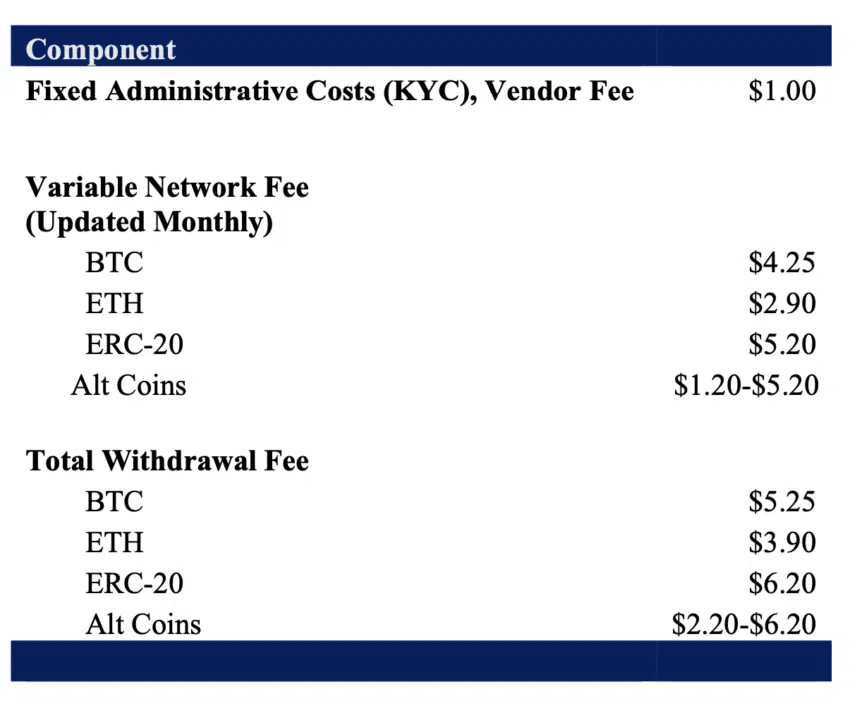 서류에 따르면, 고객은 자금세탁방지 규정을 준수하기 위해 필요한 정보를 셀시우스 계정에 업데이트해야 합니다. 특히, 고객들은 거래 건당 인출 수수료를 부담해야 합니다.