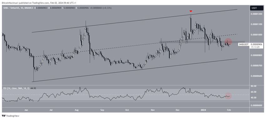 시바견(SHIB)의 가격은 2023년 12월 17일 대각선 저항 추세선이 거부된 이후 하락했습니다.