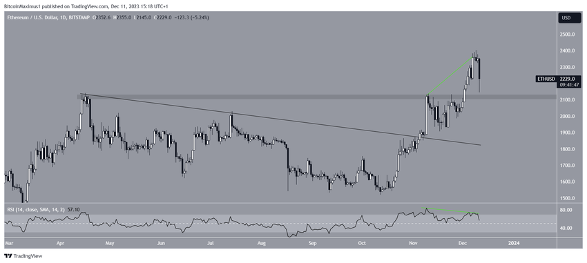 이더리움(ETH) 가격은 12월 9일 연중 최고치인 2,403달러를 기록했지만 이후 급격히 하락했습니다.
