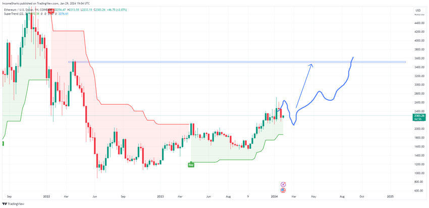 인컴 샤크스는 이더리움 가격이 3,500달러까지 점진적으로 상승 할 것으로 보고 있습니다.