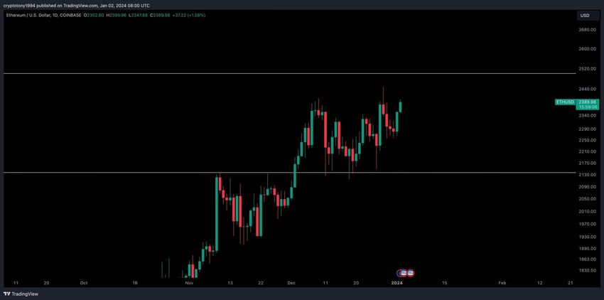 암호화폐 트레이더와 분석가들은 향후 이더리움 추세에 대해 낙관적인 전망을 내놓고 있습니다. 크립토 토니는 이전 범위를 회복했기 때문에 다음 목표는 2,500달러에서 2,600달러 사이가 될 것으로 보고 있습니다.